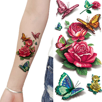 للماء زهرة الأحمر روز و الفراشة 3D لصاقات وشم مؤقت